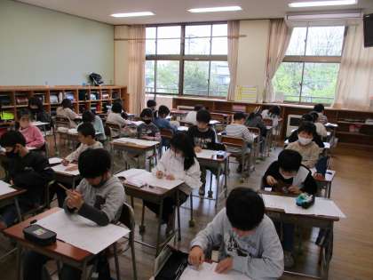 今日は国語の学力調査がありました。どの子も集中して問題に取り組んでいました。