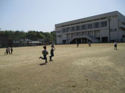 今日の休み時間の様子です。晴れていたこともあり、多くの子供たちが外へ出て遊んでいました。ケイドロをしている子供たち、虫を捕まえようとしている子供たちなど、それぞれ遊びを考えて過ごしていました。