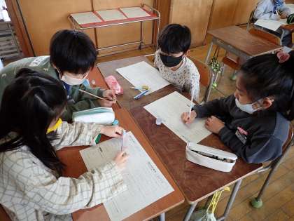 子供たちは、これまで習った知識を使ってなんとか問題を解こうとしています。友達と知恵をしぼって考えている姿は、とても頼もしです。教師が手取り足取りして教えるより、悩み、考えて力をつけた方が数倍子供にとって得です。これから、問題解決の場を多く設定していきたいと思います。