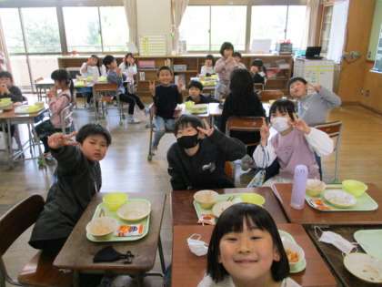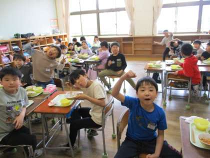 今日の給食は、G7サミットにちなんでアメリカをイメージした献立でした。同じ班の子供たちと談笑しながら楽しそうに食べています。みんなで会話をしながら、食事の雰囲気を楽しむのはいいですね。
