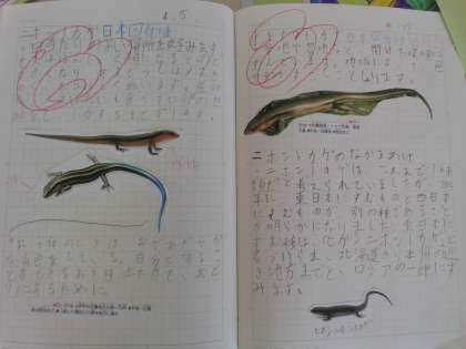 Aくんの自学ノートは、生き物についてまとめてあります。