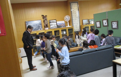 生活科の時間に、学校探険に出かけています。今日は、秘密の鍵の部屋がどこにあるかぐるっと回って探しました。校長先生の部屋も、特別に見ることができて喜んでいる1年生です。