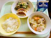 本日の献立は、ごはん、焼き餃子、炒り大豆和え、肉豆腐、牛乳 です。