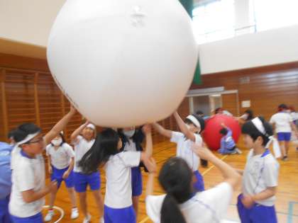 結団式を終えて、運動会をがんばろうという意識が高まってきました。4限の体育では、学年競技の練習をしました。大玉転がしでは、大玉を上げる時のコツをみんなで考えて、どうすると落ちずに前へ進められるかをたくさん試しました。