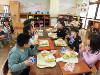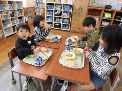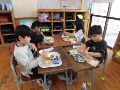 今日はサミット給食の日です。今日はイタリアの味を楽しみました。「フォカッチャおいしい!」「パスタが平べったいよ」とこれまであまり口にしてこなかったイタリア料理のおいしさに、舌鼓を打つ子どもたちでした。