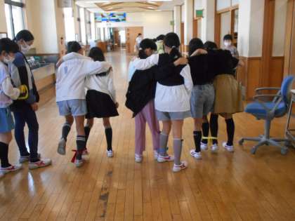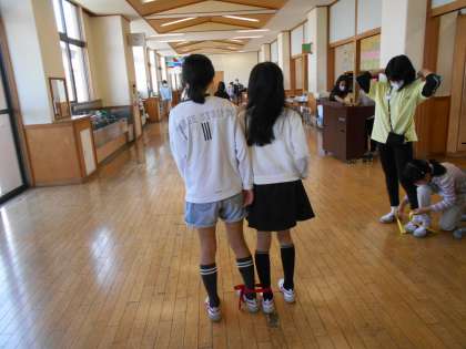 先日の体育で練習していた「二人三脚」に