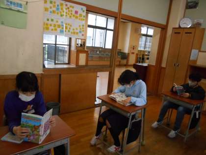 月曜日のスタートタイムは学年読書です。