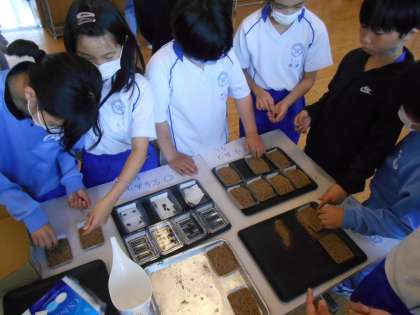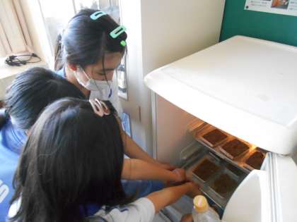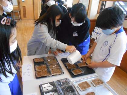 各学級で発芽の条件を調べています。
