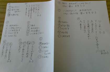 どれが学級目標にいいかを英語で「A」などと自分でいいと思ったものを言います。