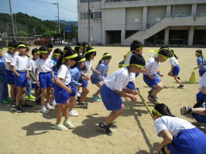 今日の運動会練習は、初めてグラウンドで台風の目を行いました。グラウンドで走る感覚を確かめながら、練習をしていました。練習を重ねるにつれ、子供たちの息が合ってきたように感じます。