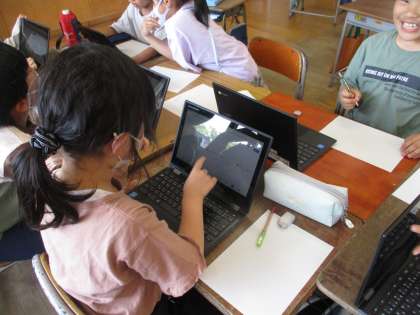 係活動の様子です。クロームブックで調べたり、何かを書いたりしていますね。どのような係があるのでしょうか。お子さんにも聞いてみてください。