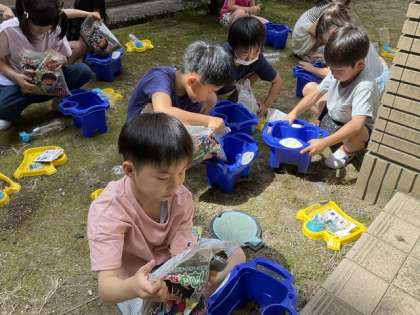 子供たちは、アサガオの鉢に土を入れ、肥料を混ぜてから種を植えました。これから、アサガオがどのように育っていくのか子供たちも楽しみにしています。