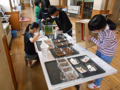 理科で観察している動植物はそれぞれの学級で管理しています。