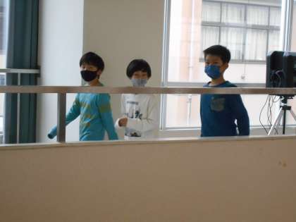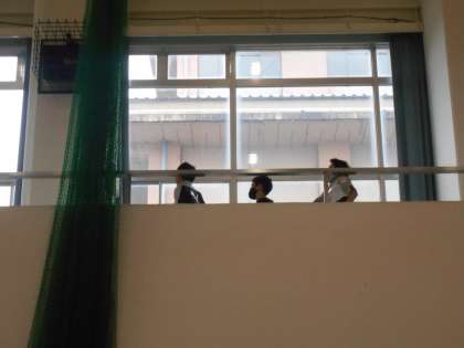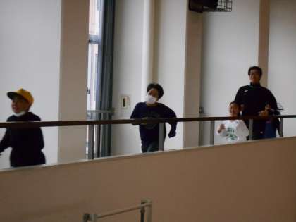 今朝は雨が降っていたので、体育館でギャラリー走を行っていました。