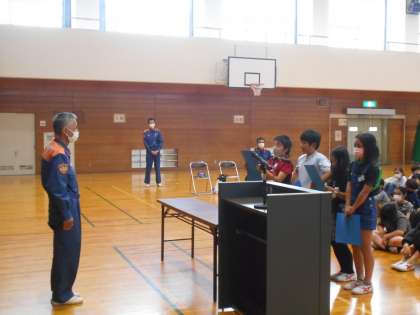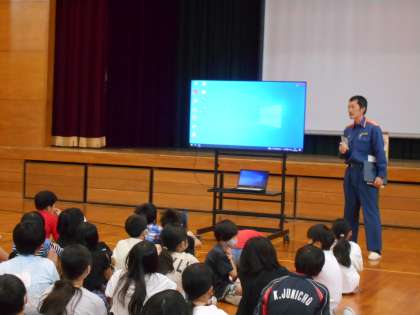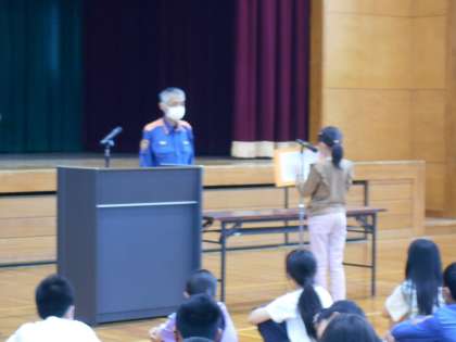 防火教室の前半として、消防署の方から、地震についてのお話がありました。