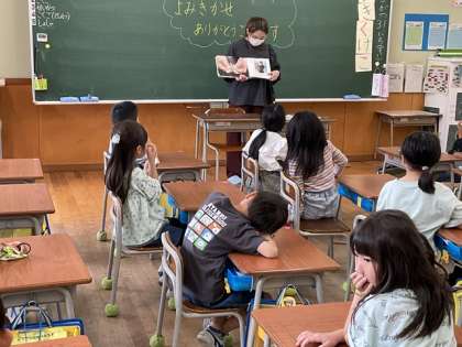 今朝は、読み聞かせをしてもらいました。子供たちからは、「また聞きたいな」と早くも次回を期待する声が聞かれました。
