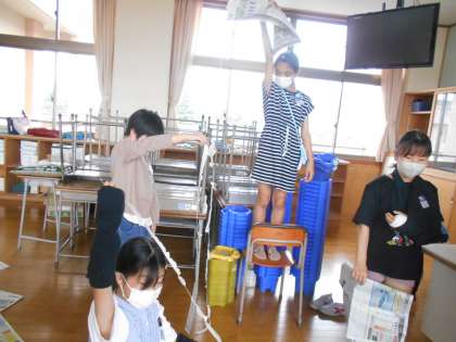 この学級は新聞紙をちぎりながら会話を楽しんでいました。