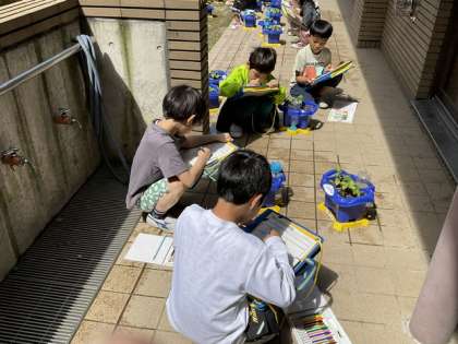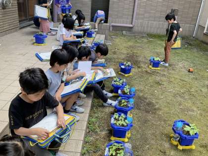 アサガオの観察では、「たくさん芽が出てきた」「葉が大きくなってきた」など、成長を感じているようです。