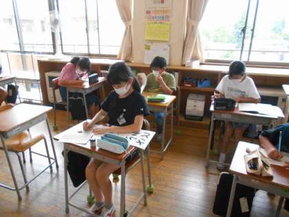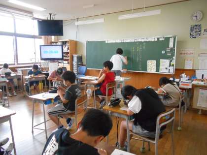 5年生はどの学級も少人数指導の先生が書写を担当しています。