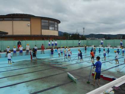 1年分の汚れを落とし、きれいになったプールを見て「早くプールに入りたい!」と意気込んでいました。6年生のみんな、ありがとう!