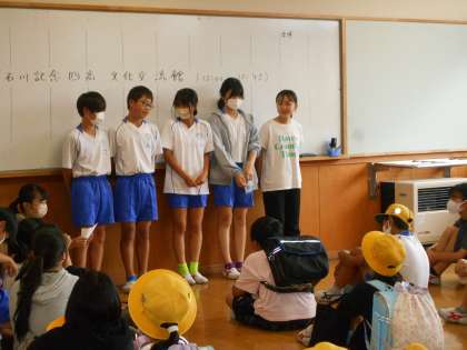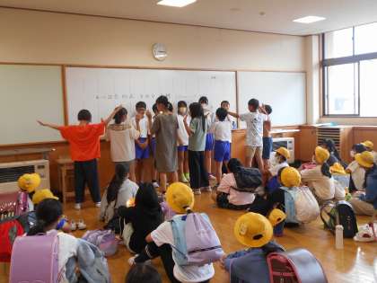 明日の富山市小学生陸上競技交流大会に出場する仲間に向けて、6年生全員で壮行会を行いました。