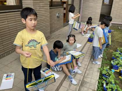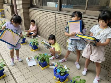 子供たちが植えたアサガオが、すくすくと育ってきています。