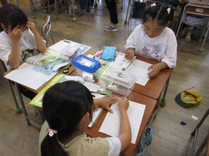 今日の理科の授業の様子です。このクラスでは、バッタを飼っています。今日はバッタの観察を行いました。これからどのように成長するのか楽しみですね。