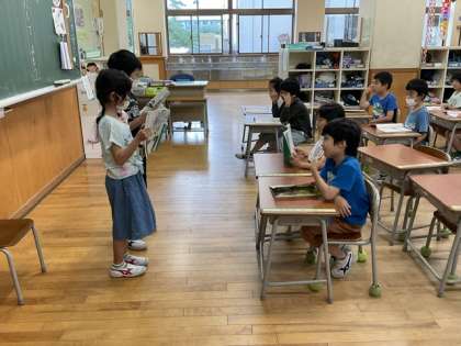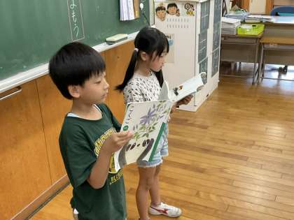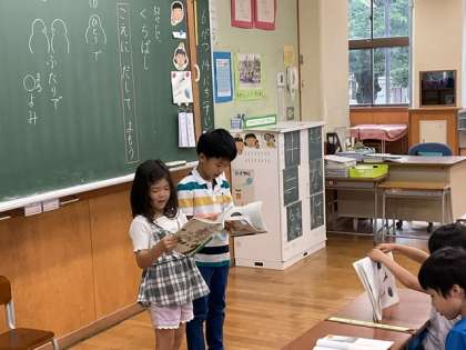 国語の時間、ペアで音読する活動をしました。友達の音読をよく聞き、交互に音読していました。