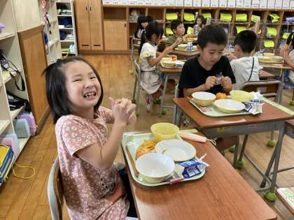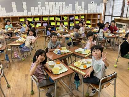学校探検中、校長先生から「今日の給食には冷凍みかんが出るよ」と教えてもらった子供たち。いざ給食で手にしてみると、「つめたーい」「むりだー」「こおるー」などと明るい悲鳴が・・・。
