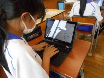 ユニバーサルデザインについて調べて書いた文章をクラウド上で読み合いました。