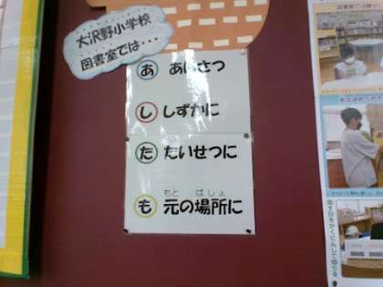 子供記者★6月19日(月)5年生 図書室の合言葉 公開日 2023/06/19 更新日 2023/06/19 子供記者のページ 図書室の合言葉です。 あいさつ、しずかに、たいせつに、もとのばしょにが図書室の合言葉です。 これからもあしたもを守って図書室を使いましょう。 子供記者 5年 Y・K