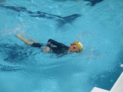 今日はプール開きがありました。4年生と合同で活動しました。初めに、各クラス代表一人ずつが模範水泳を行い、25mを泳ぎました。泳ぎ切った後は、見ていた子供たちから自然に拍手がわき上がりました。その後は水に慣れる活動を行い、宝探しゲームなどもしました。25mを泳ぐことができる子が多くなってほしいですね。