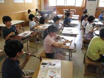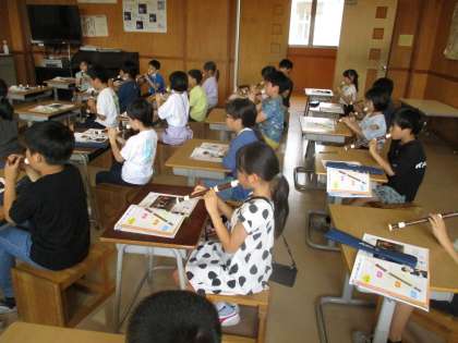 今日の音楽では、初めてリコーダーを使いました。家で吹いてみた子もいるようで、難しいと感じていたようです。リコーダーを吹くときの正しい姿勢や吹き方を学びました。また、「シ」の音の出し方も学びました。初めてのリコーダーでしたが、子供たちは楽しんで活動していました。