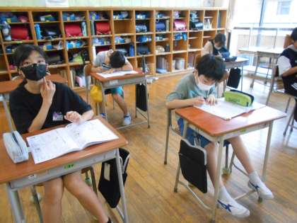 子供たちが大きな声で熟語や例文を読み上げながら、練習に取り組みました。