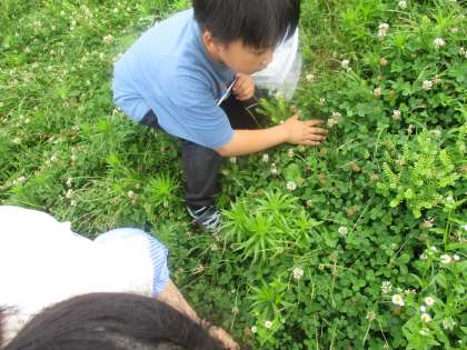 今日の理科の時間では、トンボやバッタを探しに行きました。トンボはいませんでしたが、ショウリョウバッタやコオロギはおり、つかまえました。これからの成長が楽しみです。