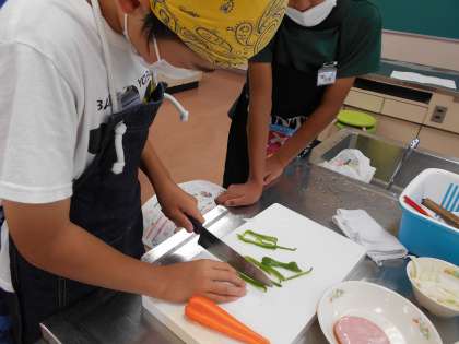 始めは「ピーマン嫌い!」と言っていた子供たちも、自分たちで作った料理の味は格別だったようです。