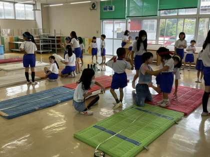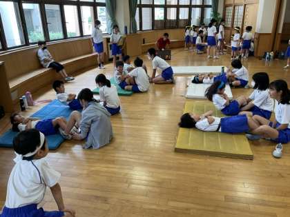 今日は、6年生に協力してもらい新体力テストの記録を測定しました。