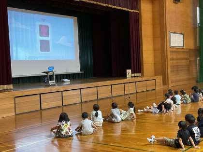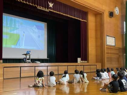 歩く場所、道路の渡り方、とび出し禁止など、DVDを見ながら交通ルールについて確かめました。ご家庭でも、子供たちが今日学んだことについて話を聞いてみてください。