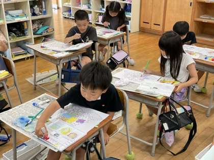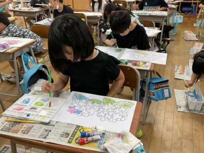 7月5日(水) 1年生 水彩絵の具でぬってみよう1