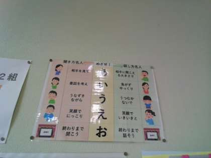 聞き方、話し方名人                                              これには、大切なことが書かれています。                                       ちなみに、わたしは、「い」を目指しています。