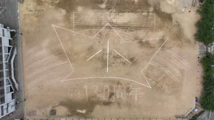 今年は、創立130周年になる年です。そこで、全校のみんなで航空写真を撮るイベントを企画しました。係の子供たちは、デザインを相談したり、学校の歴史クイズを考えたりと、思い出に残る時間にしようと考え、準備してきました。