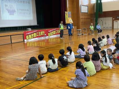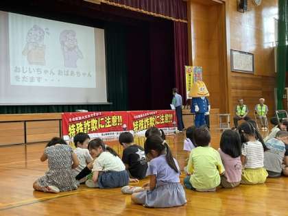 今日は、警察の方から特殊詐欺についての話を聞きました。学んだことをお家の人に伝えて、大切な家族が被害にあわないようにしてほしいと思います。