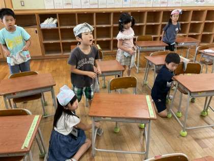 1学期に使わせてもらった机やロッカー、下足入れの掃除をしました。きれいに整えることで、2学期がスムーズに始められるように、自分のところを一生懸命掃除していました。