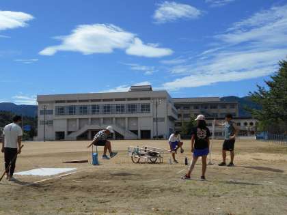 今日は走り幅跳びの練習をしました。朝早くからグラウンドに集合し、自分たちで練習場所の整備をしていました。今日の練習だけでも各々の成長が見られました。