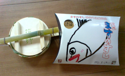 箱に色を塗って自分だけのオリジナルのますの寿司を作れました。
