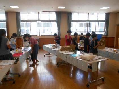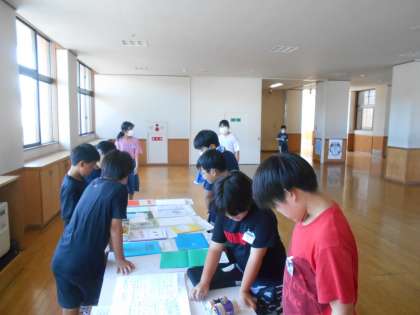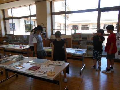 各学年の夏休みの作品を見に行く時間を設けました。