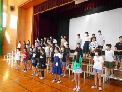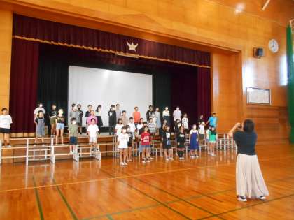 昨日から朝の歌を体育館に場所をうつして行っています。