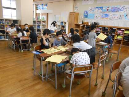 校外学習では、グループで活動します。どこを見て回るか、何をして遊ぶかをグループで話し合っています。