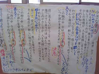 発表会で歌う「小さな勇気」を、各クラスでどんなふうに歌うか話し合った紙です。