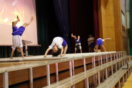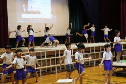 今日の学習発表会の様子です。自分たちの番となると、それまでそわそわしていた子供たちの顔が変わり、少し緊張した顔になっていました。しかし、最初のダンスの音楽が鳴り始めると、緊張が少し解けたのかノリノリでダンスをしていました。マット運動では、自分のこれまでの練習の成果を発揮しようと集中して演技をしていました。最後のダンスでは、楽しそうに笑顔でダンスをしていました。